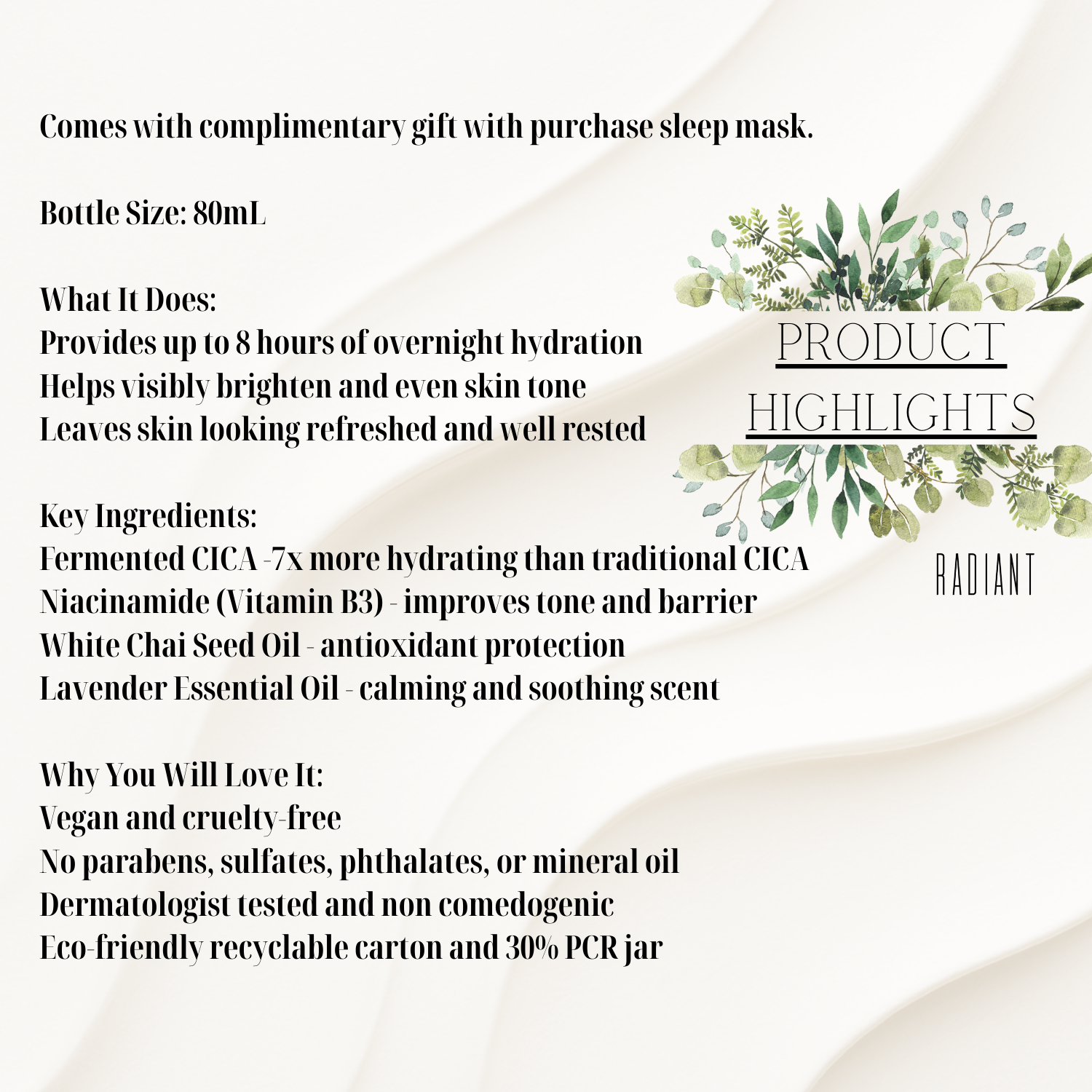 The Sleep Skin Nutrition Mask delivers up to 8 hours of deep hydration while you sleep. The lightweight, clear texture works to lock in moisture, soothe skin, and visibly even skin tone so you look refreshed and radiant by morning. Perfect for adding to your nighttime skincare routine after moisturizer—get the most out of your beauty sleep with this must-have overnight mask set.